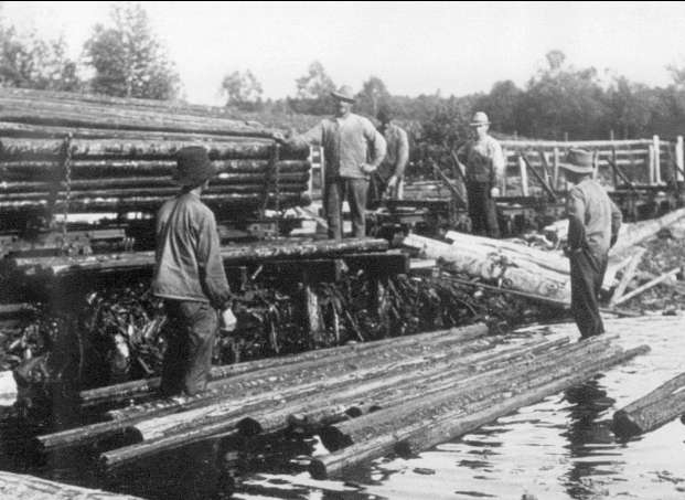 Undenäs. Flottning, skiljningsställe vid Edet. Fotot taget i mitten av 1920-talet. Endast förstoring 30 x 40 cm.
