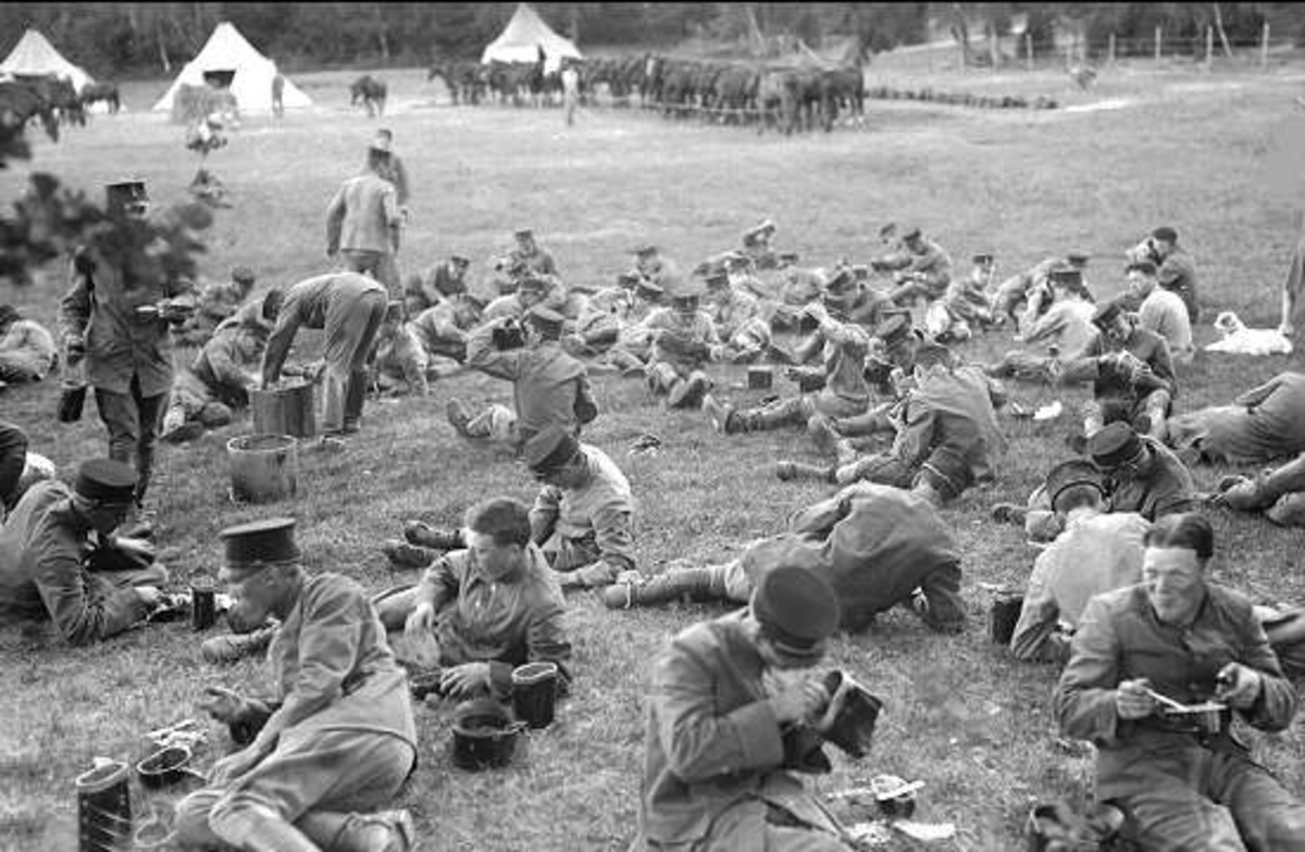 Fältmässig utspisning i bivacken vid Örlen, Fagersanna under sommarmarschen 1934.