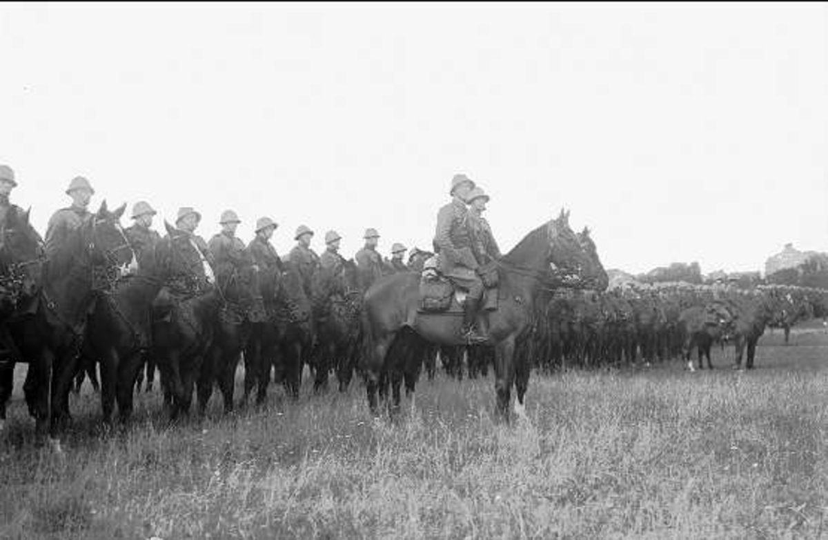 Regementet uppställt söder om K 3 kasern färdig för avlämning till sommarmarsch 1934.