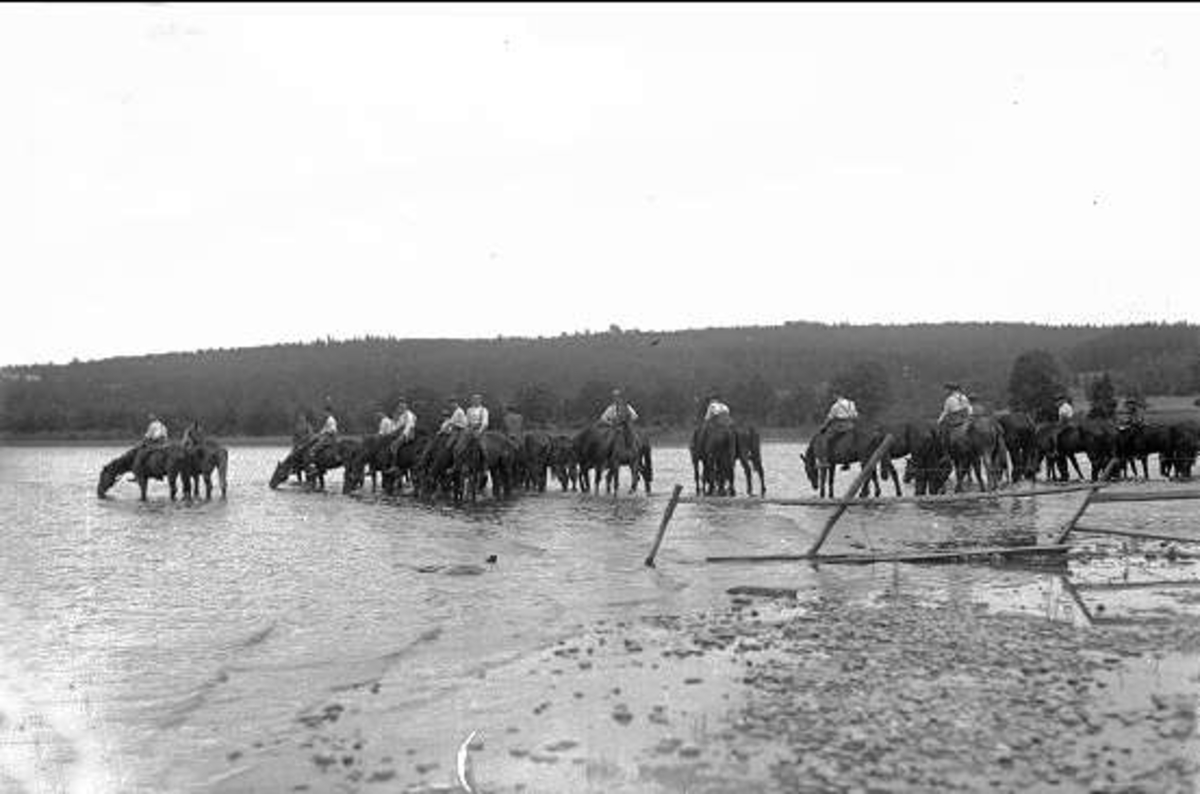 Vattning i Örlen i samband med hästvård under sommarmarschen 1931.