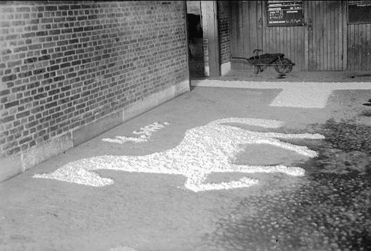 Vattenpasset, mellan långstallarna och kortstallarna i 4.skvadrons stall, K 3. Hit leddes hästarna för vattning tre gånger om dagen innan vattenkoppar monterades in i varje spilta.