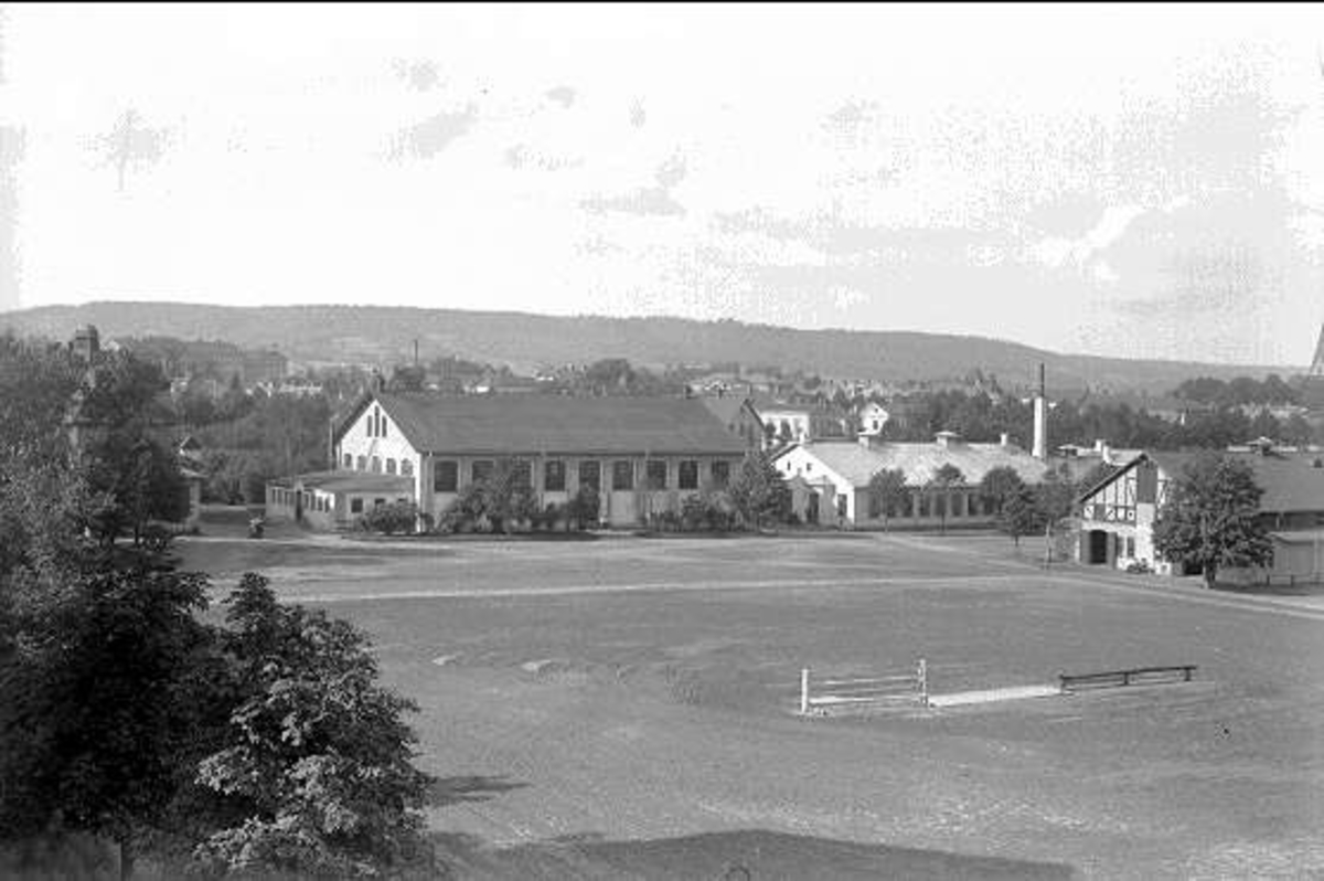 K 3 kasern i Skövde, i fonden gymnastiksal, matsal och livskvadronens stall.