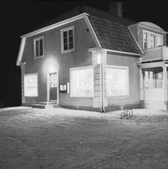 Bele Andrés pappershandel vid södra torget. Affären är numera riven och hyreshuset (Borgen), ägd av Wicke André ligger där. Endast neg finns.