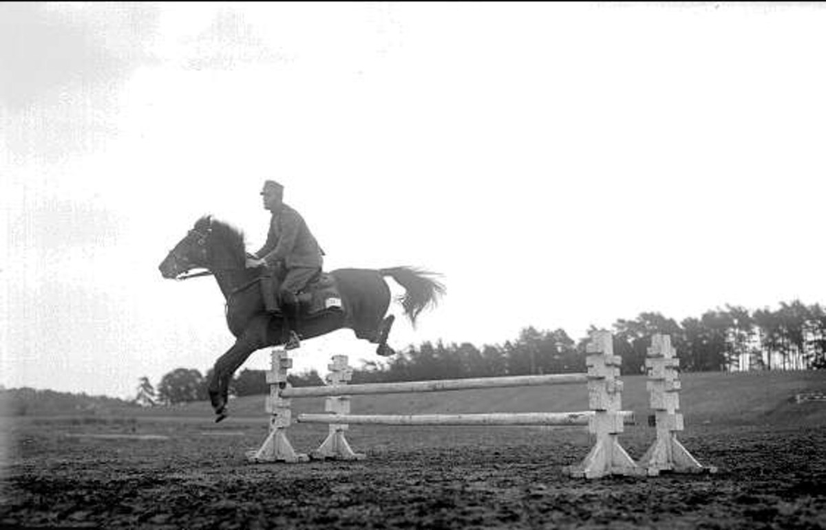 Hoppträning på fältet öster om kasern ("lusharpan"). Dunkehallsåsen syns i bakgrunden.