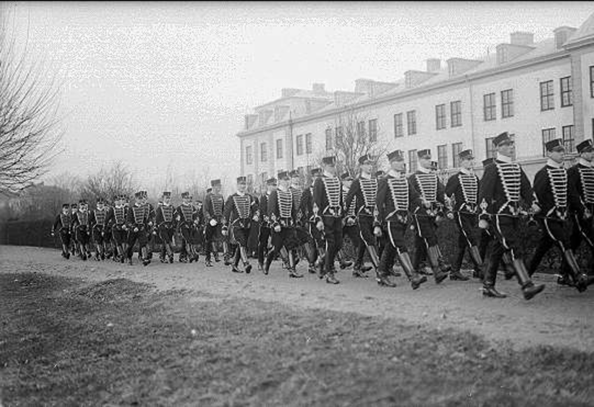 Förbimarsch söder valvet K3 kasern efter 4.decemberhögtidlighållandet i soldathemmet.