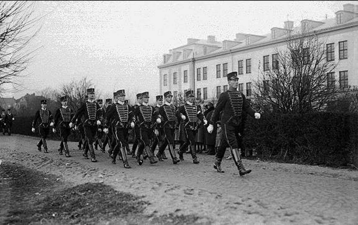 Förbimarsch söder valvet K3 kasern efter 4.decemberhögtidlighållandet i soldathemmet.