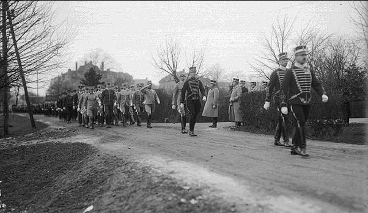 Förbimarsch framför valvet K 3 kasern.