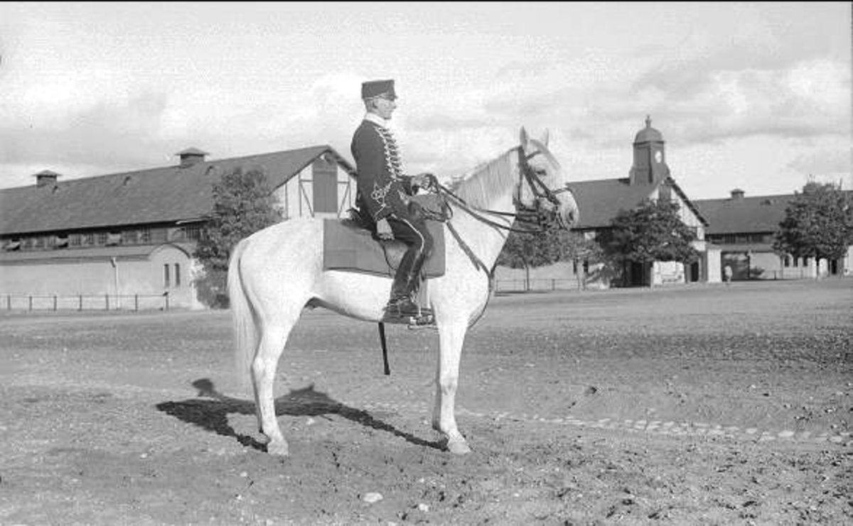 Livhusar med tilldelad stamhäst på västra kaserngården.