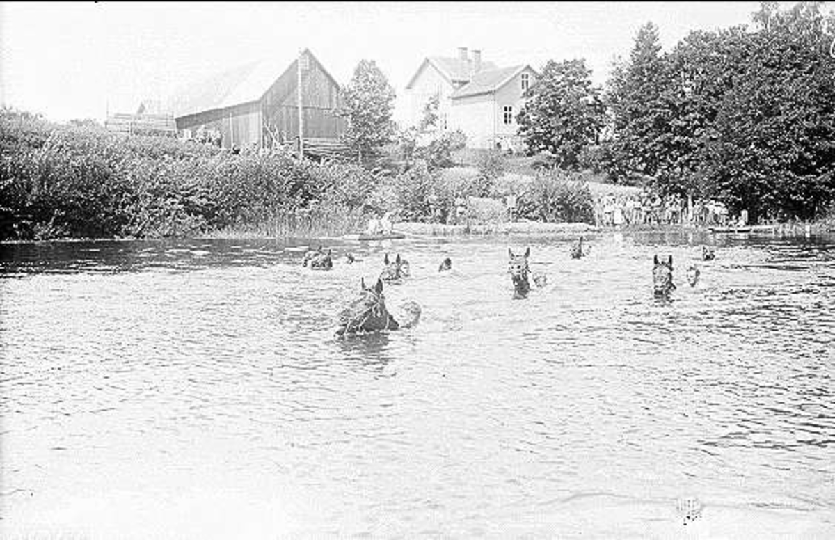 Patrullfälttävlan till häst 1934, övergång av vattendrag genom simning med häst.
