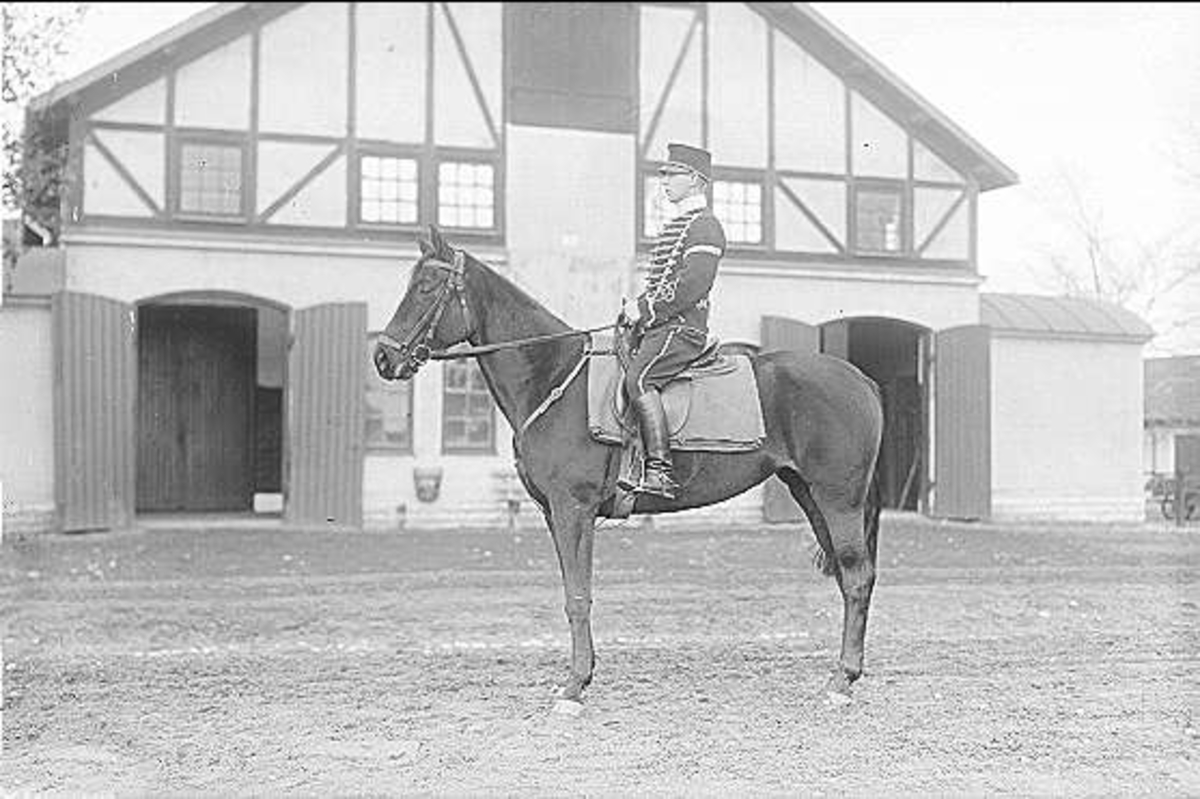 Furir med tilldelad stamhäst söder skvadronsstallet.