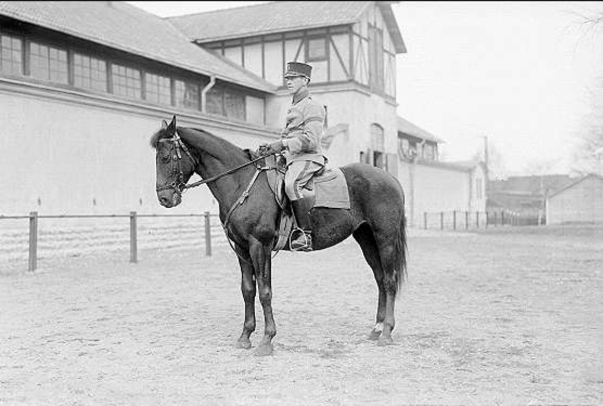 Livhusar med tjänstehäst vid skvadronsstallets östra långsida.