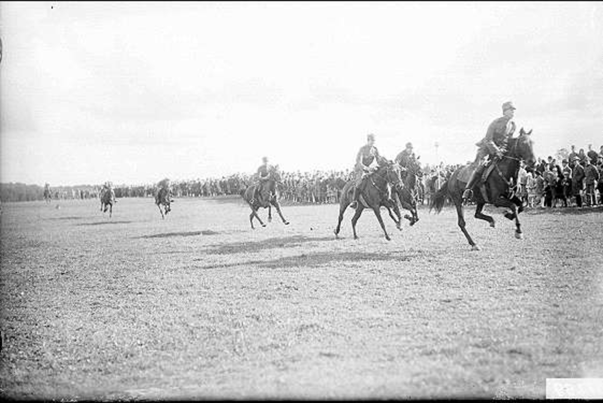 Regementskapplöpningar på övningsfältet söder K 3 kasern. Upploppssträckan från svackan väster segertorpsbyn nordväst ut mot mål söder kasern.