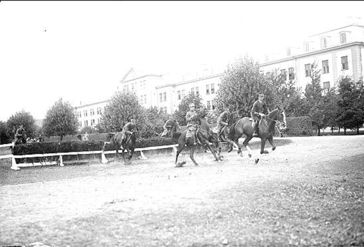 Regementskapplöpningarna 1931 på fältet söder K 3 kasern. Det gäller att hålla sig bakom mastern, så att man inte blir diskvalificerad.