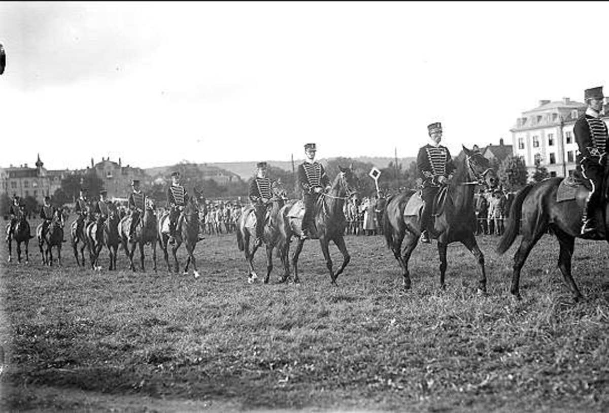 Regementskapplöpningarna 1928 på fältet söder K 3 kasern. Paradering för domaren.