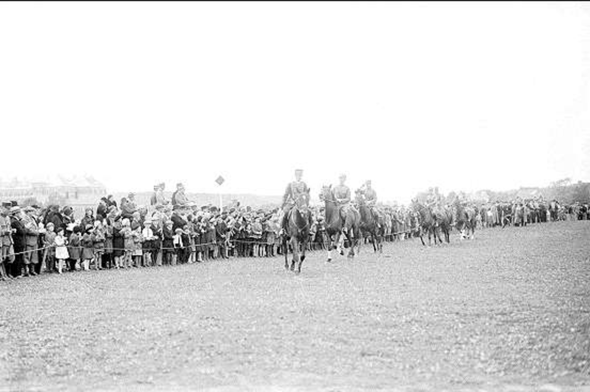 Regementskapplöpningarna 1931 på fältet söder K 3 kasern. Hälsning på domaren.