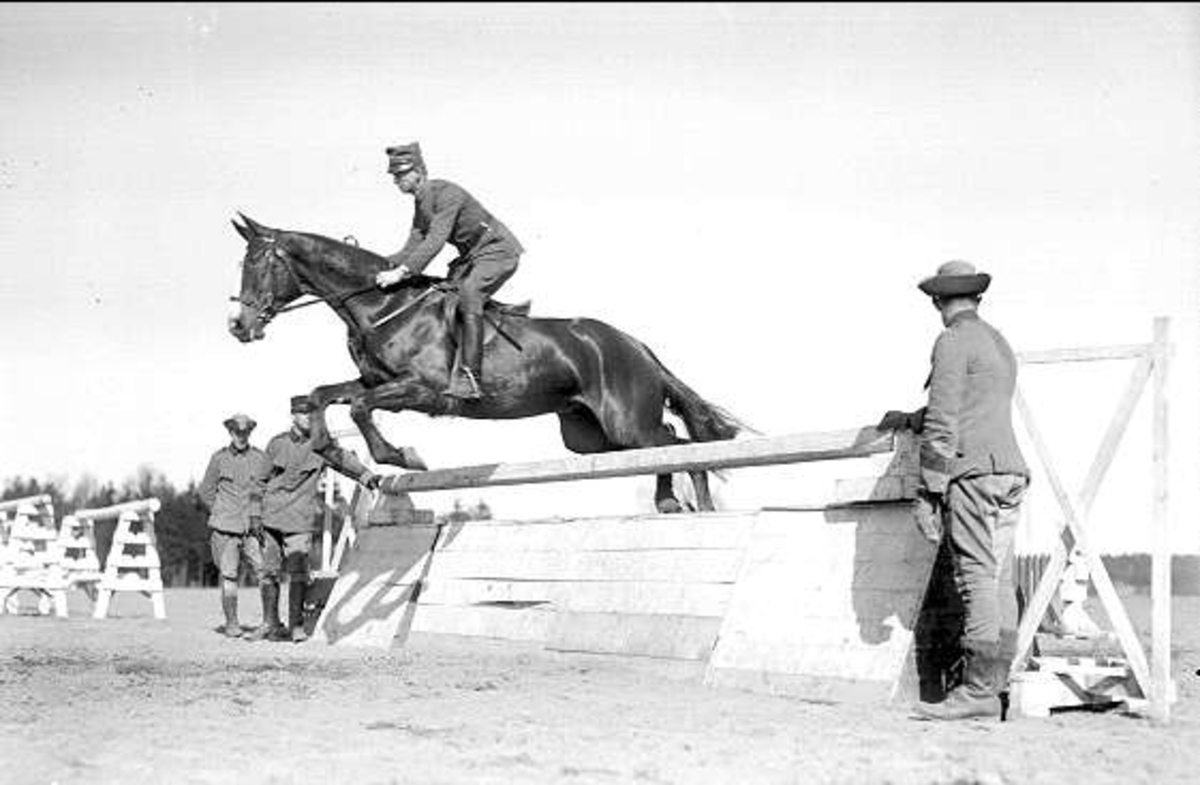 Träningshoppning på södra fältet. Rolf Örn var en prishoppningsryttare av världsklass.