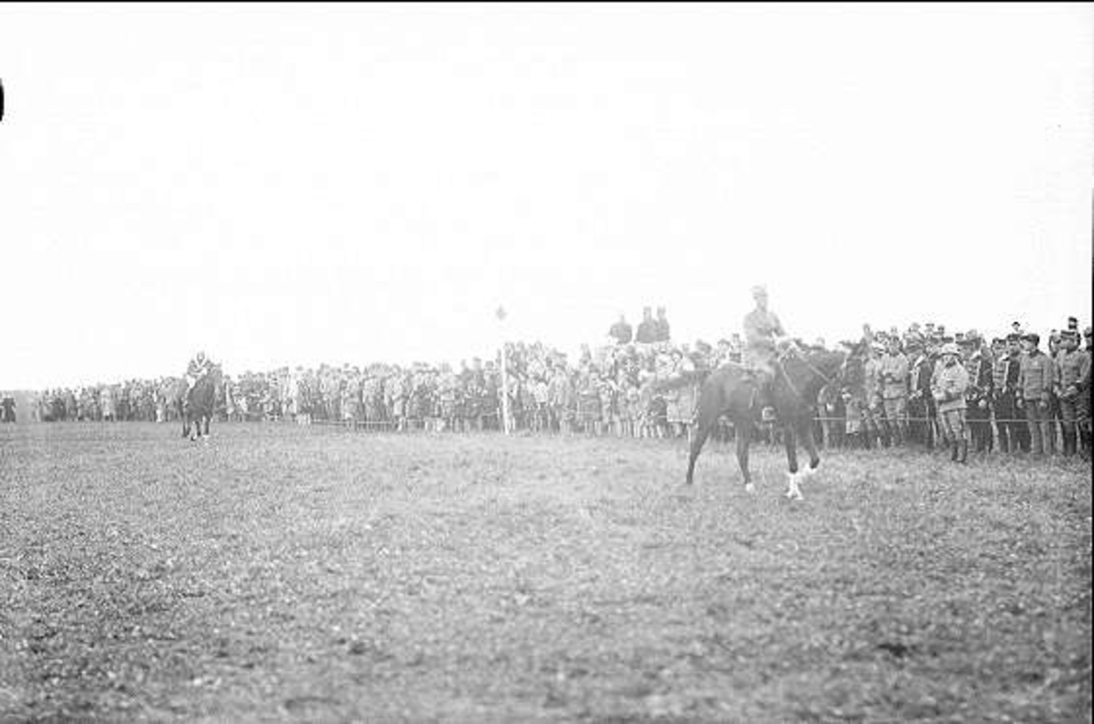 Regementskapplöpningar på fältet söder K 3 kasern. Jaktlopp med ryttm. G A Westerström som master.