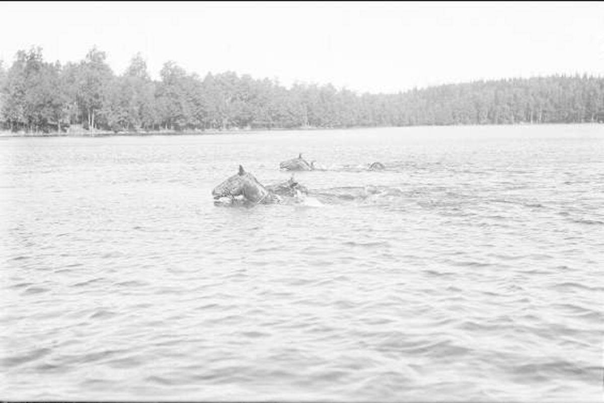 2. Skvadrons patrullchef löjtnant Gunnar "Putte" Schildt. Simning med häst.