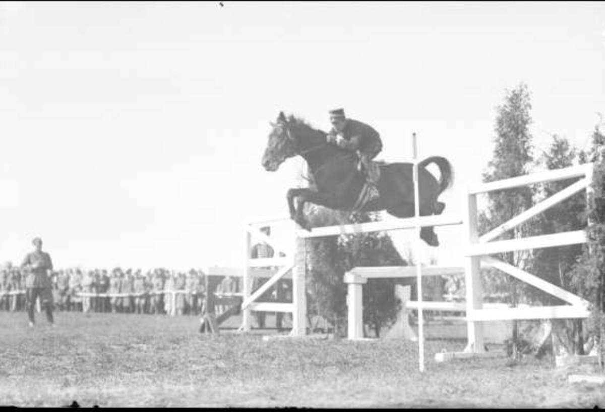 Titel: Skövde fältrittklubbs offentliga tävlingar 1936 på prishoppningsbanan öster om K 3 kasern.