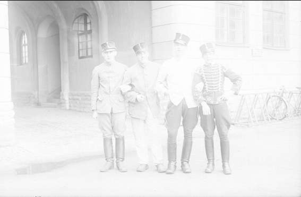 Hästskötare/"Malajer" framför valvet K 3 kasern.