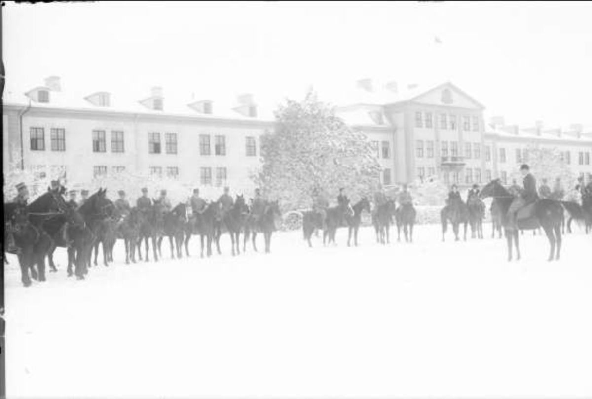 Mastern ger sina instruktioner före jaktrittens början. Jaktrittfältet uppställt framför K 3 kasern.