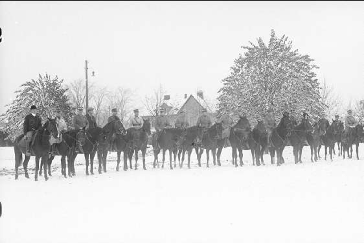Mastern ger sina instruktioner före jaktrittens början. Jaktrittfältet uppställt framför K 3 kasern.