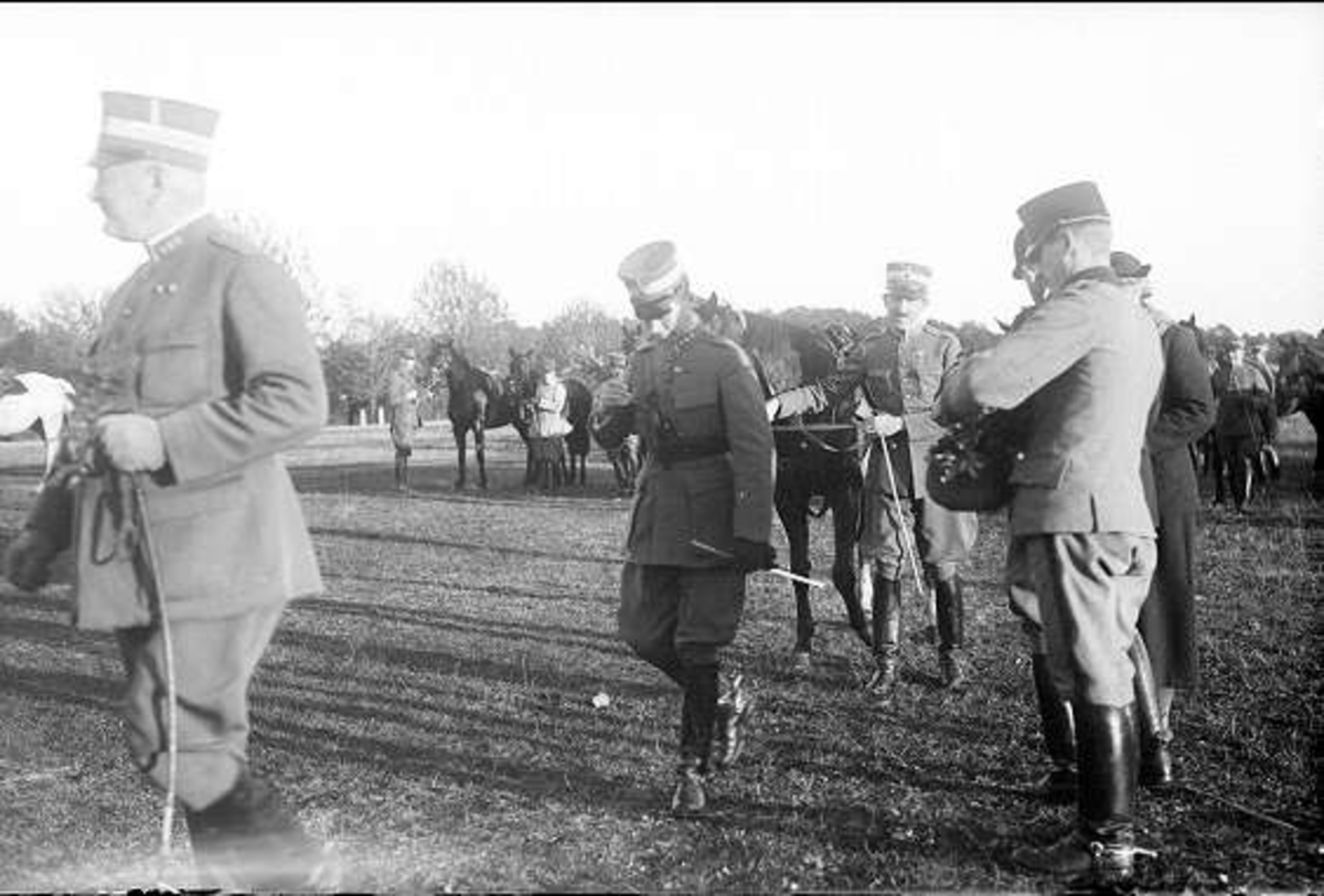 Fram till mitten på 30-talet hade även I 9 och T 2 vissa befälshästar och vissa kärrhästar. En del officerare var så ridintresserade att dom red med i K 3: s höstjakter. Här från vänster i bild öv. Uggla I 9, övlt. Henry Peyron K 3 och övlt. Nordenswan I 9.