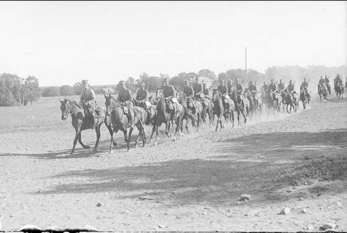 Ridning på "Kolonnvägen" från K 3 kasern för ridutbildning på södra fältet.