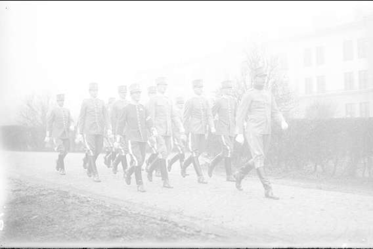 Marsch från soldathemmet till K 3 kasern efter högtidlighet 4. Dec.