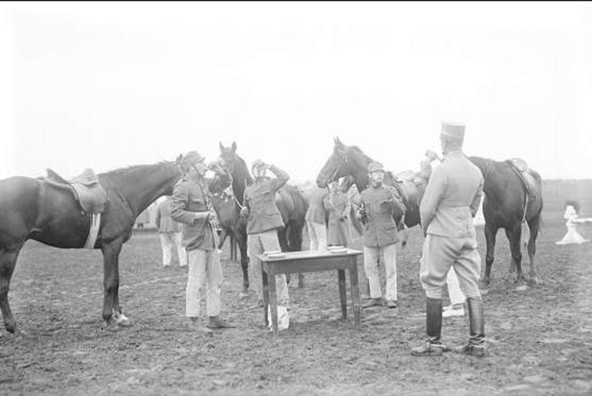 Aspirantskolans avslutning med bl.a. skämttävlingar. Här på fältet mellan K 3 kasern och "förvaltarbostaden". Dunkehallsåsen i bakgrunden.