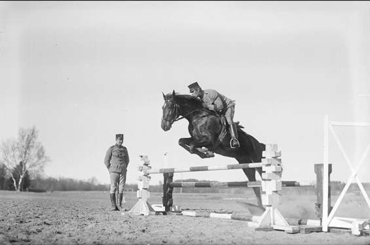 Titel: Hoppning för underbefäl på fältet söder K 3 kasern. Till vänster i bild "V-formade björken" och trumslagargropen.