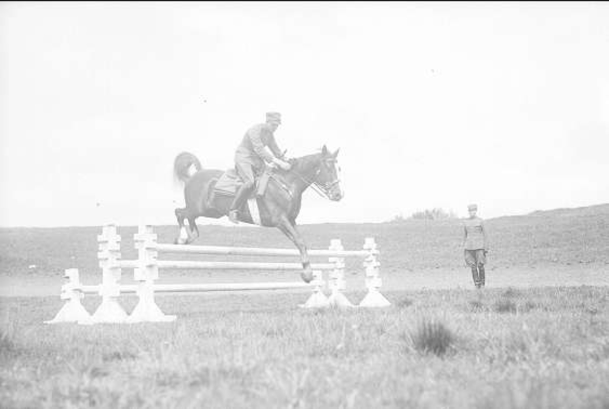 Träningshoppning på fältet söder K 3 kasern. Se vilken "stil" dom har.
