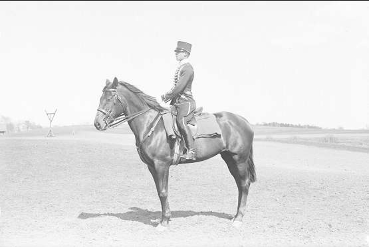 Aspirant på tilldelad stamhäst. Aspiranten iklädd regementets m/ä (K 3)