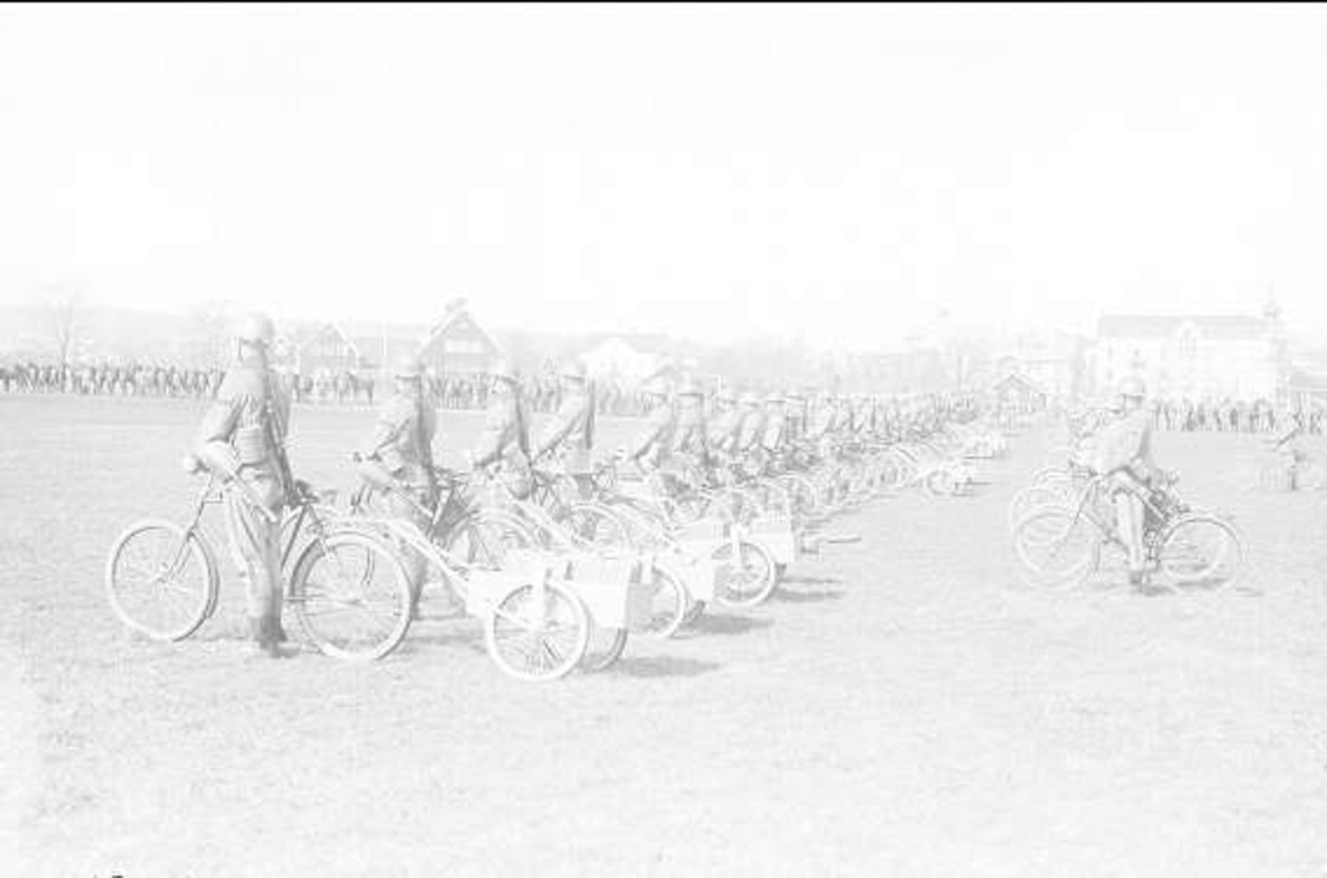 Försök med cykeltrupp, cykelkärra för transport av tunga vapen och ammunition.