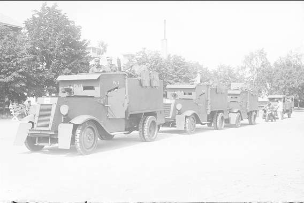 Kavalleriförsök med pansarbilar under kavalleriinspektör G Gyllenstiernas ledning.