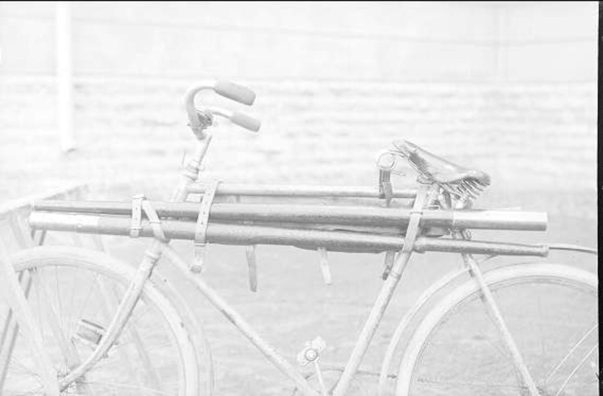 Försök med cykeltrupp, bärstänger till sjukvårdsbår.