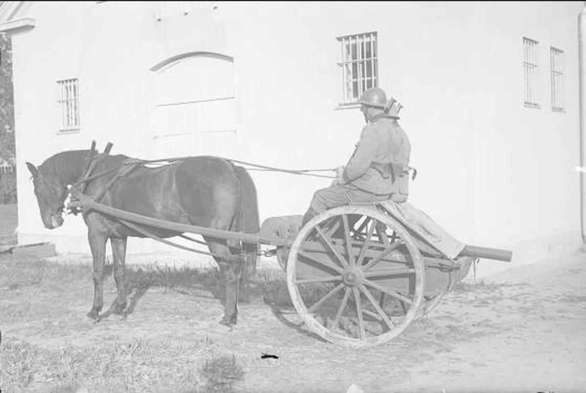 Försök med cykeltrupp, hästanspänd kanonatrapp.