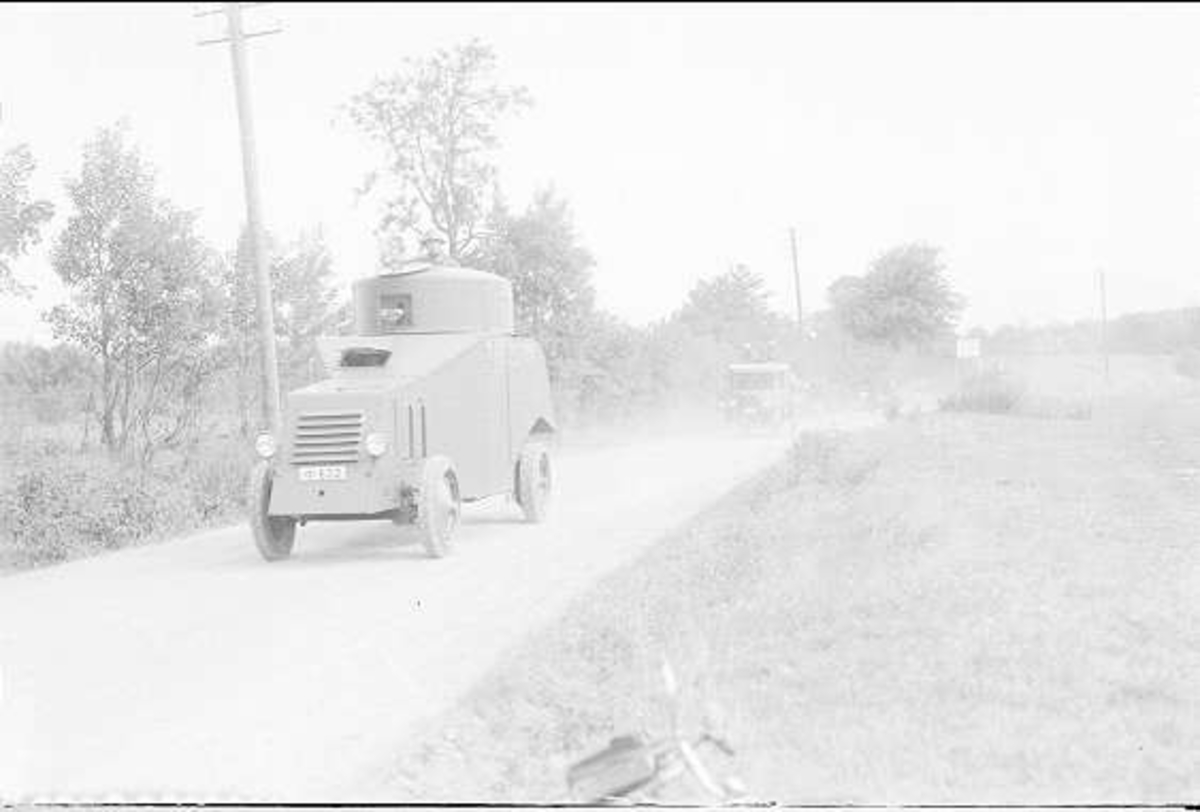 Kavalleriförsök med pansarbilar under kavalleriinspektör G Gyllenstiernas ledning.