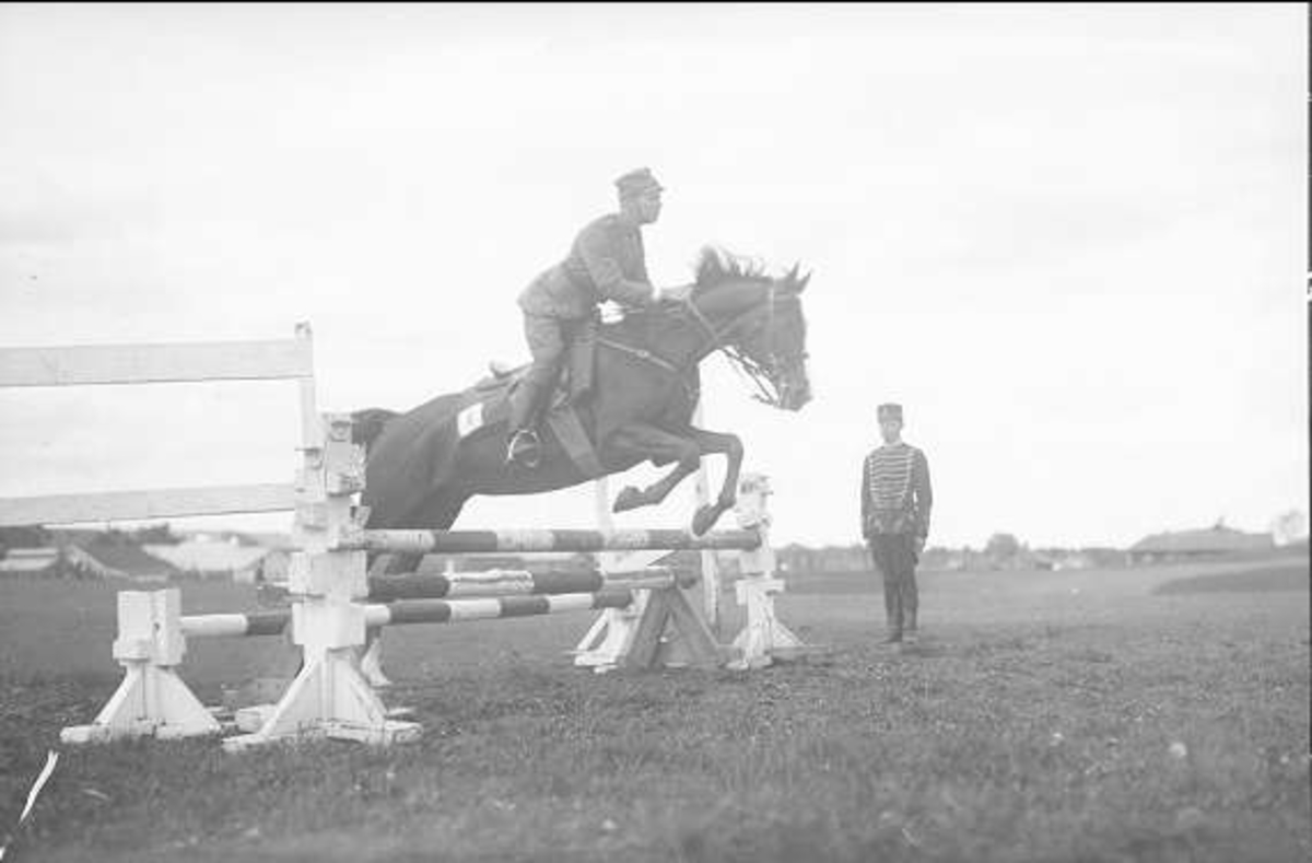 Inspektion i hoppning för kavalleriofficersaspirantskolan på fältet söder om kasern.