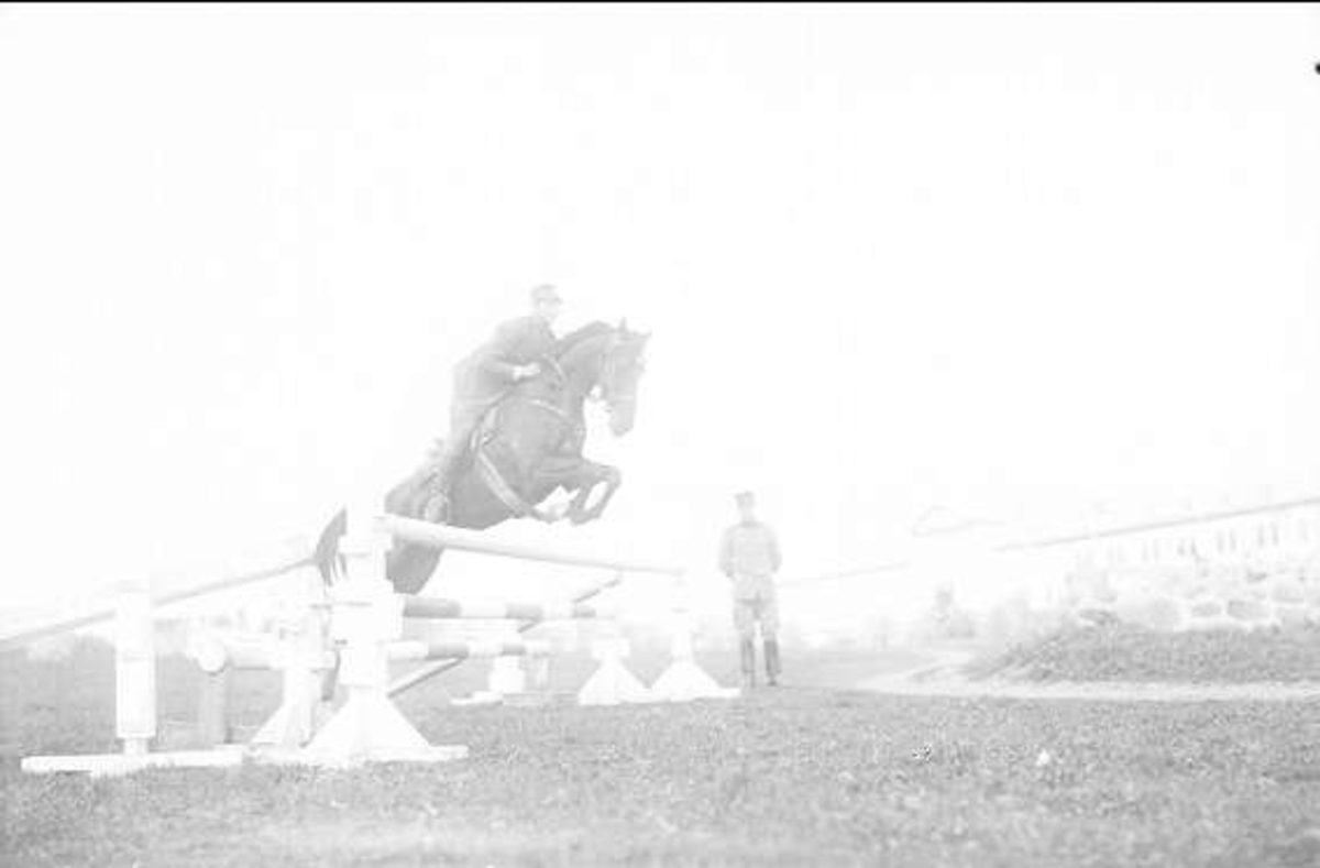Inspektion i hoppning för kavalleriofficersaspirantskolan på fältet söder om kasern.