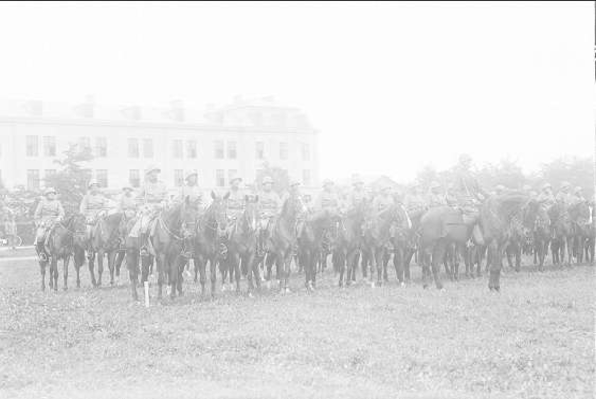 Reg. uppställt på linje söder K 3 kasern för att taga emot deltagarna i kamratdagen.
