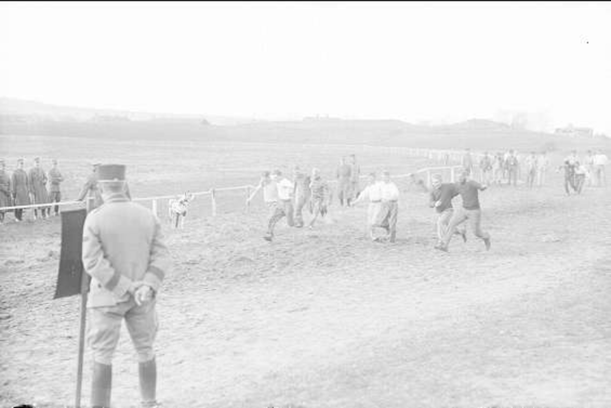 Titel: 4. skvadron idrott - skämttävlingar vid prishoppningsbanan öster om K 3 kasern.