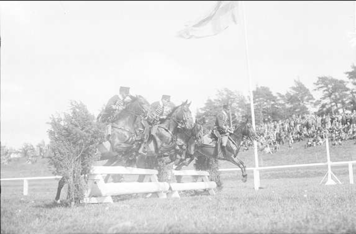Titel: En av stamskolorna visar "hoppning i fart" på prishoppningsbanan öster K 3 kasern.