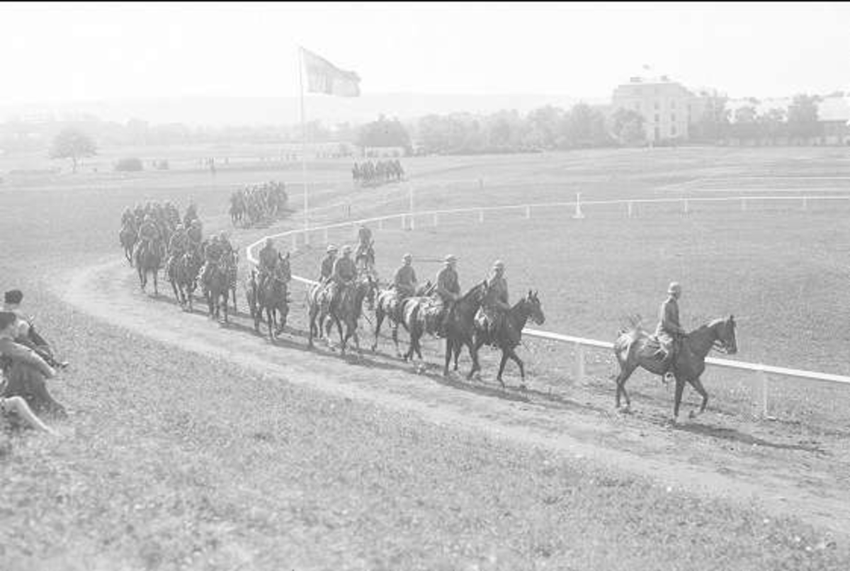 Titel: Ryttarskvadrons uppvisning sydöst K 3 kasern vid kamratdagen 7/6 1937.