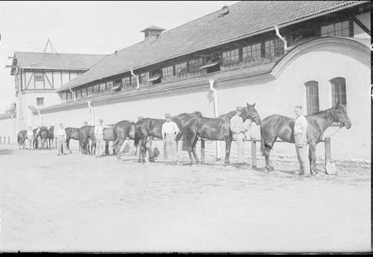 Hästvård/rykt på östra långsidan av skvadronens stall.