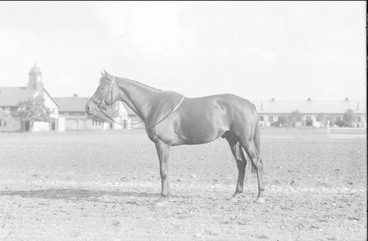 Titel: Frihetsdressyr på kaserngården söder om stallarna.