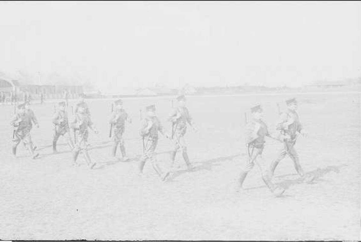 Exercis till fots på "Lusharpan" öster K 3 kasern, 3 skv.