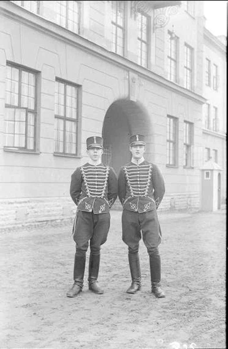 Livhusarer i uniform m/1895 (m/ä) utanför valvet vid K 3
