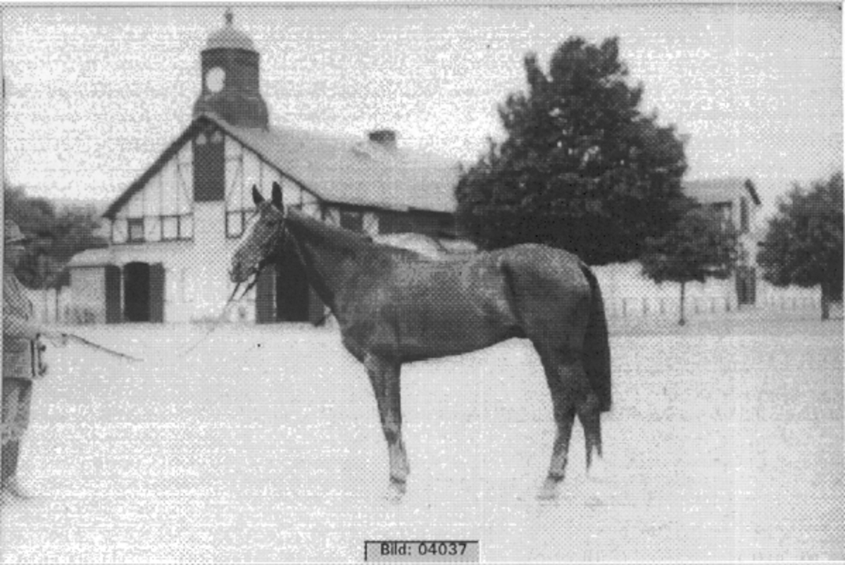 Titel: Livhusar med tilldelad stamhäst vid skvadronstallarna.