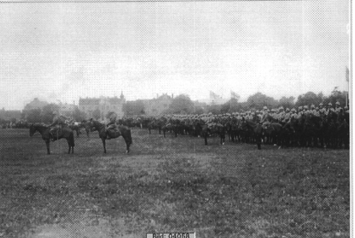 K3. Regementet avlämnas på fältet söder husarkasern före avmarsch till fälttjänst.